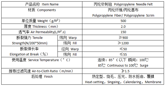 除塵布袋產(chǎn)品技術(shù)參數(shù):